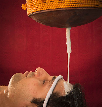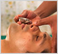 Shirodhara - Medicated oil is gently poured in a continuous stream on the forehead of the patient, as decided by the physician based on the ailment.