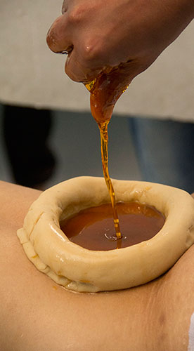 Tharpanam: Retention of medicated oil or ghee over the eye balls.